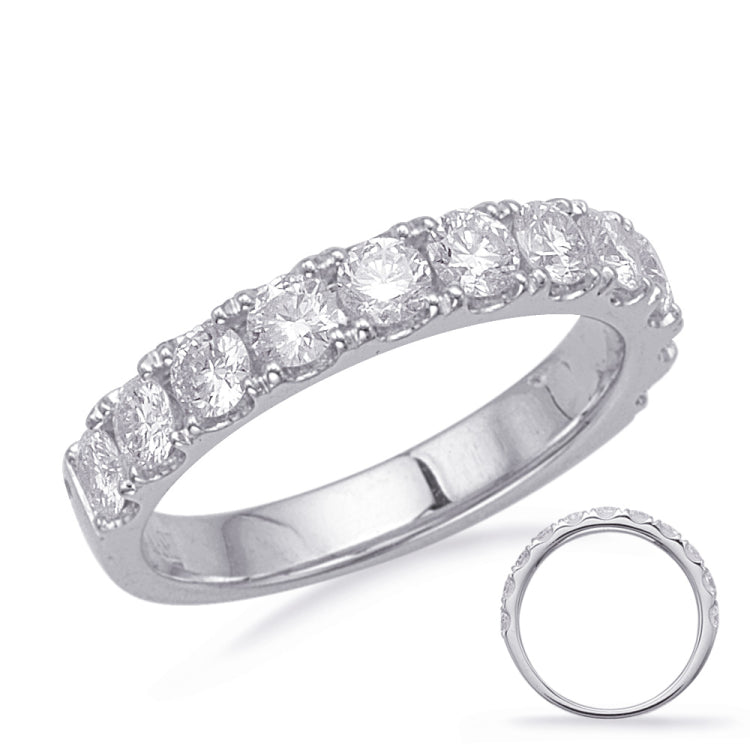 This Band is available in 14K White Gold. There are a total of 11 stones. There are Rounds with a total carat weight of 1.19 set in a Prong Set setting.