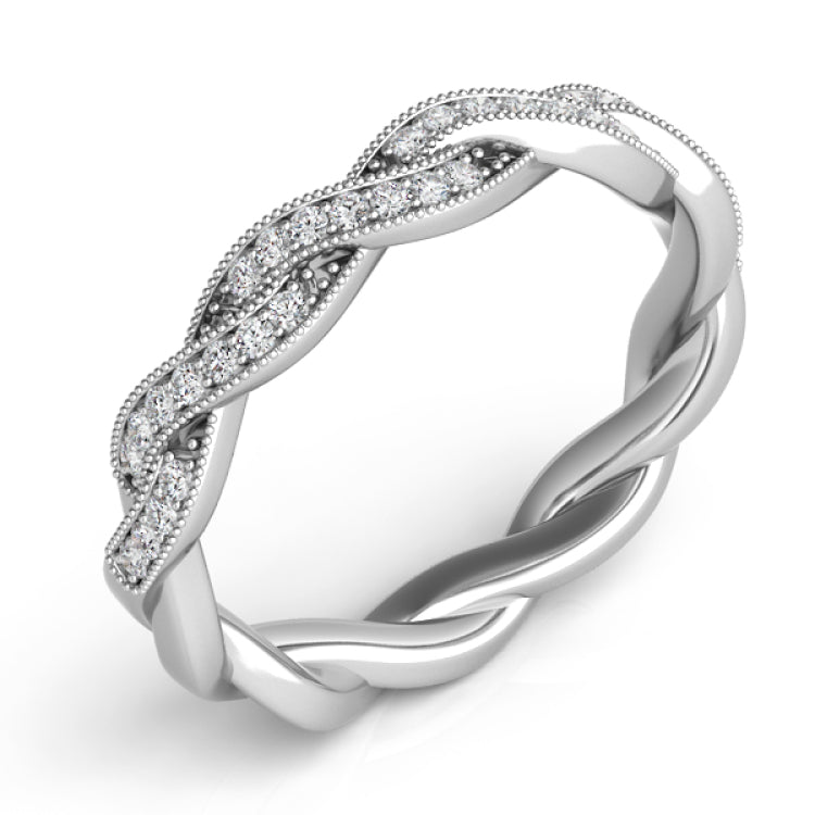 This band is available in 14K White Gold. There are a total of 36 stones. There are Rounds with a total carat weight of 0.2 set in a Micro Pave setting.