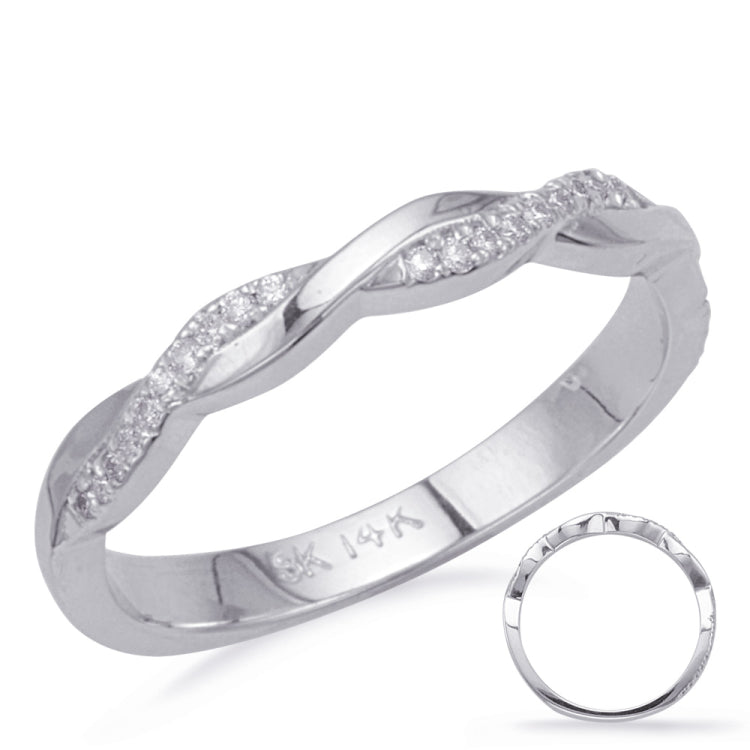This band is available in 14K White Gold. There are a total of 38 stones. There are Rounds with a total carat weight of 0.15 set in a Micro Prong setting.