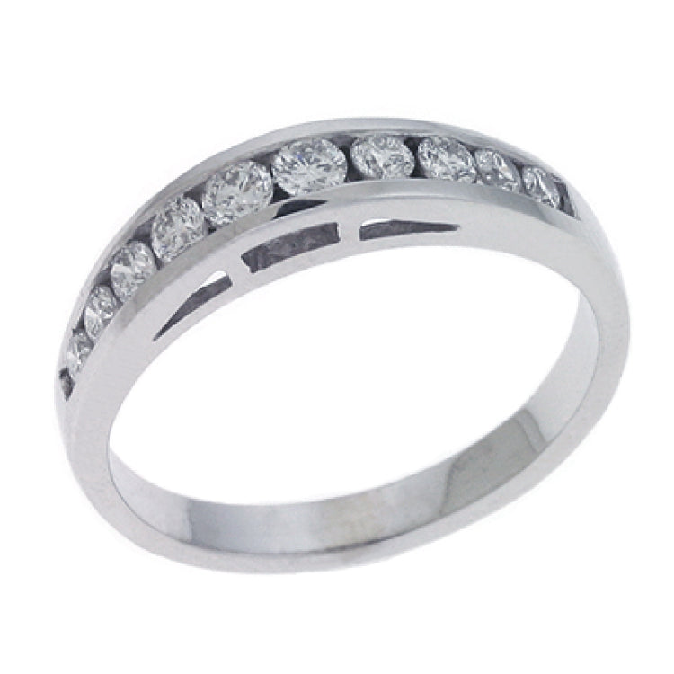 This band is available in 14K White Gold. There are a total of 11 stones. There are Rounds with a total carat weight of 0.41 set in a Channel Set setting.