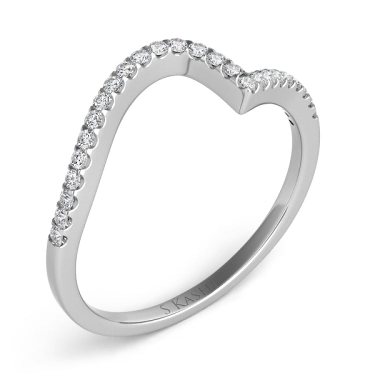 This band is available in 14K White Gold. There are a total of 25 stones. There are Rounds with a total carat weight of 0.13 set in a Prong Set setting.