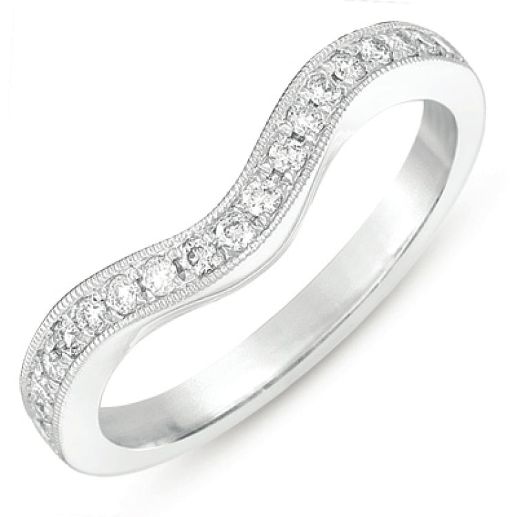 This band is available in 14K White Gold. There are a total of 19 stones. There are Rounds with a total carat weight of 0.25 set in a Micro Pave setting.