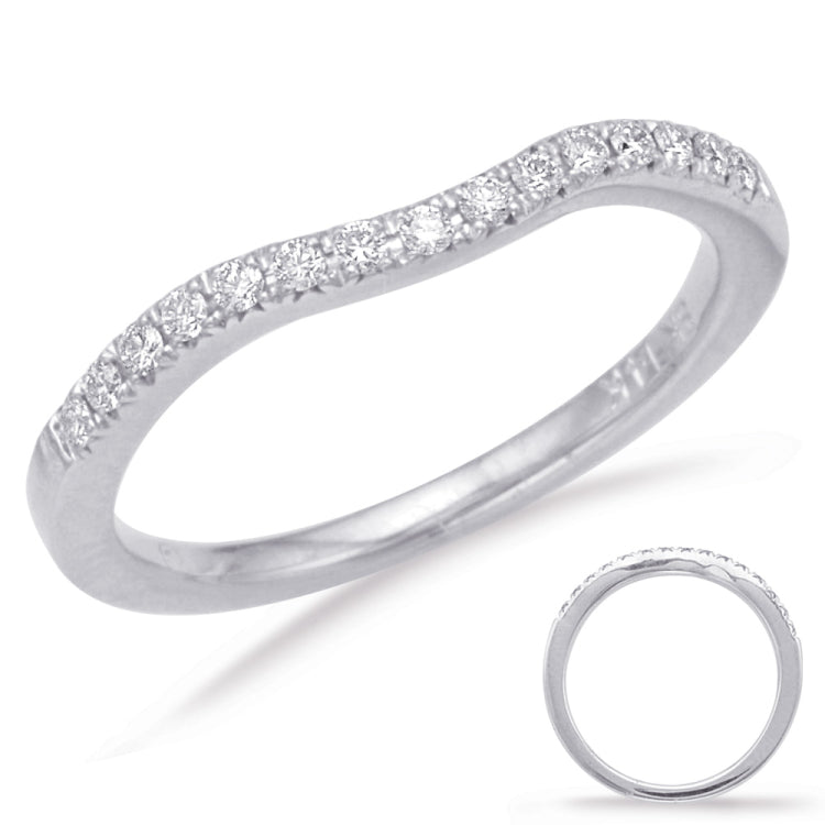 This band is available in 14K White Gold. There are a total of 15 stones. There are Rounds with a total carat weight of 0.15 set in a Micro Prong setting.