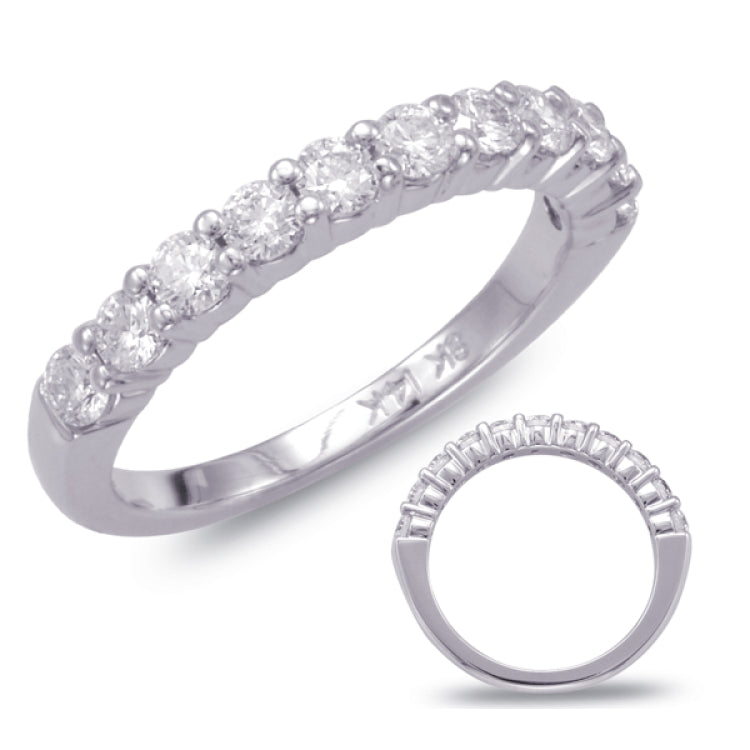 This Band is available in 14K White Gold. There are a total of 11 stones. There are Rounds with a total carat weight of 0.79 set in a Prong Set setting.
