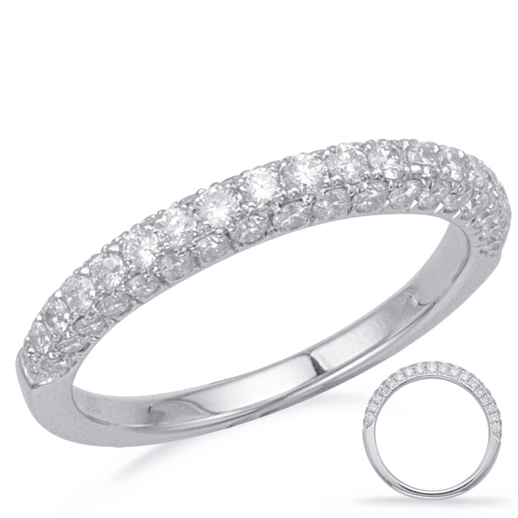 This Band is available in 14K White Gold. There are a total of 55 stones. There are Rounds with a total carat weight of 0.76 set in a Micro Prong setting.