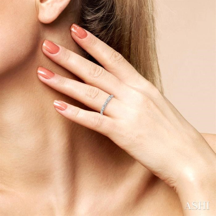 1/10 Ctw Marquise Shape Lattice Round Cut Diamond Wedding Band in 14K White Gold