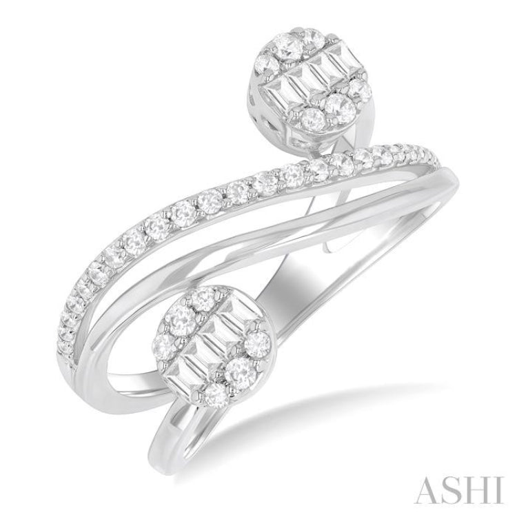 1/2 Ctw Bypass Fusion Baguette and Round Cut Diamond Fashion Open Wrap Ring in 14K White Gold