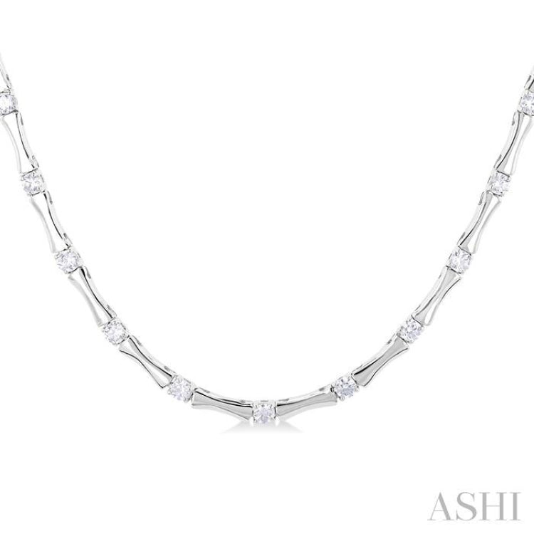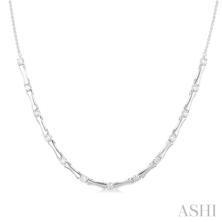 1 Ctw Halfway Bamboo Internodes Round Cut Diamond Fashion Necklace in 14K White Gold