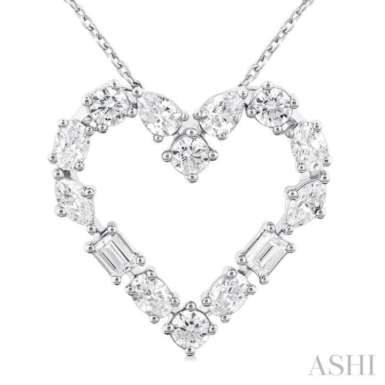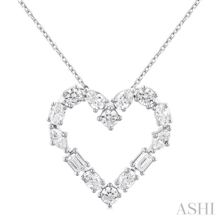 1 Ctw Heart Shape Mixed Diamond Cut Fashion Pendant With Chain in 14K White Gold