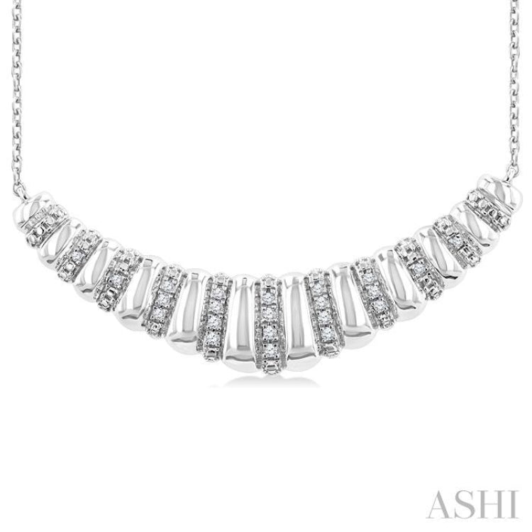 1/10 Ctw Ribbed Dome Shape Single Cut Diamond Bold Fashion Pendant With Chain in Sterling Silver